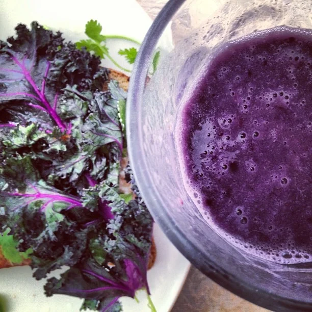 /March 22, 2013 by GERALUZ getting my #purp on for lunch #purple #kale #purplepotatoes #& #purplesmoothie the blackbean burger also looks purp :)