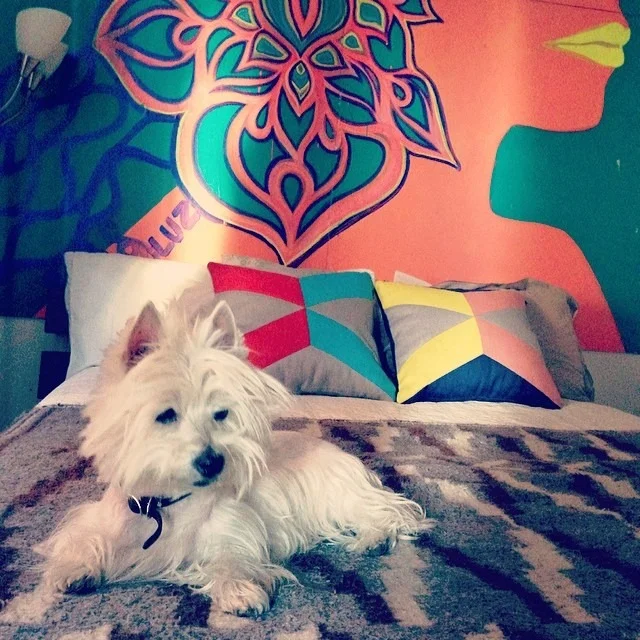 /February 27, 2014 by GERALUZ #Leelee #digs her new #bed #loft #westie #Inca #neonpalace #patterns #textures #westiesarethebesties @westiegram