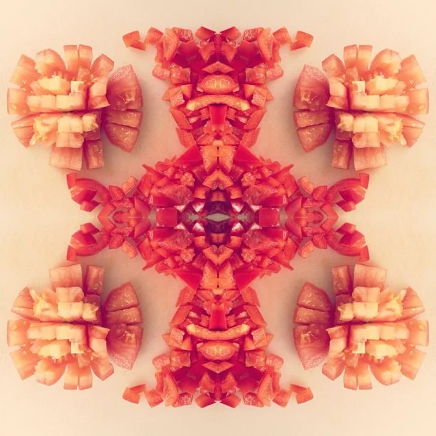 /October 8, 2013 by GERALUZ #playing w ur #food #design #prep #mosaic of #organic #vegan #chili #foodporn #tomatoes #red #pepper #kaleidoscope