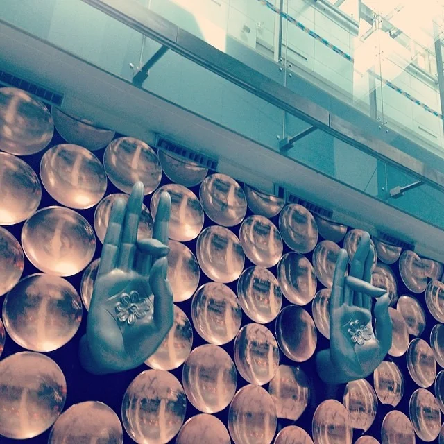 /April 11, 2014 by GERALUZ #sweet #mudras #airport #publicart #welcome to #Delhi #hugehands #hinduism #buddhism #ritual #gestures (at Indira Gandhi International Airport Metro Station)