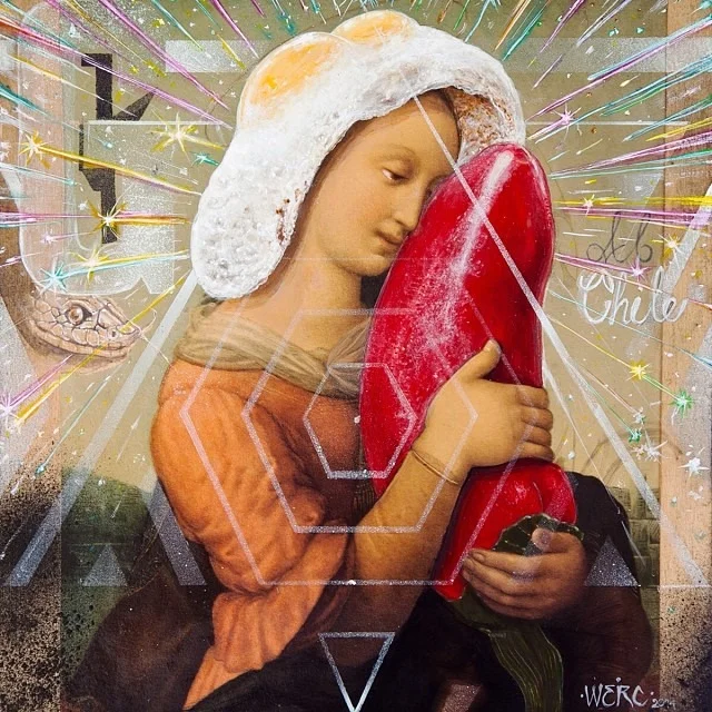 /February 14, 2014 by GERALUZ @w3rc ‘s “It’s all in the Genes” will be at the #ChineseAmericanMuseum #LA HEAT: TASTE CHANGING CONDIMENTS #artshow #inspired by #Sriracha & #Tapatillo #hotsauce #renaissance #remix #Raphael #intervention